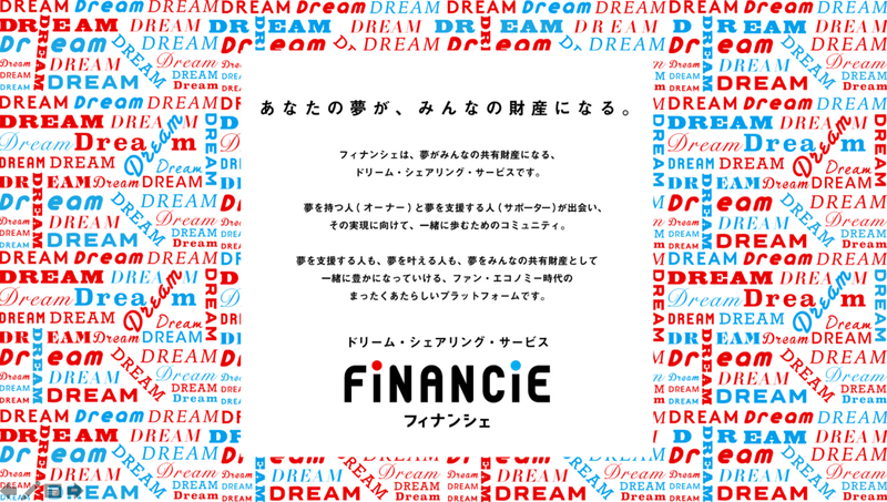 FiNANCiEは夢を持つオーナーと夢を支援するサポーターが出会い、その実現に向けて、一緒に歩むためのサービスがコンセプト。